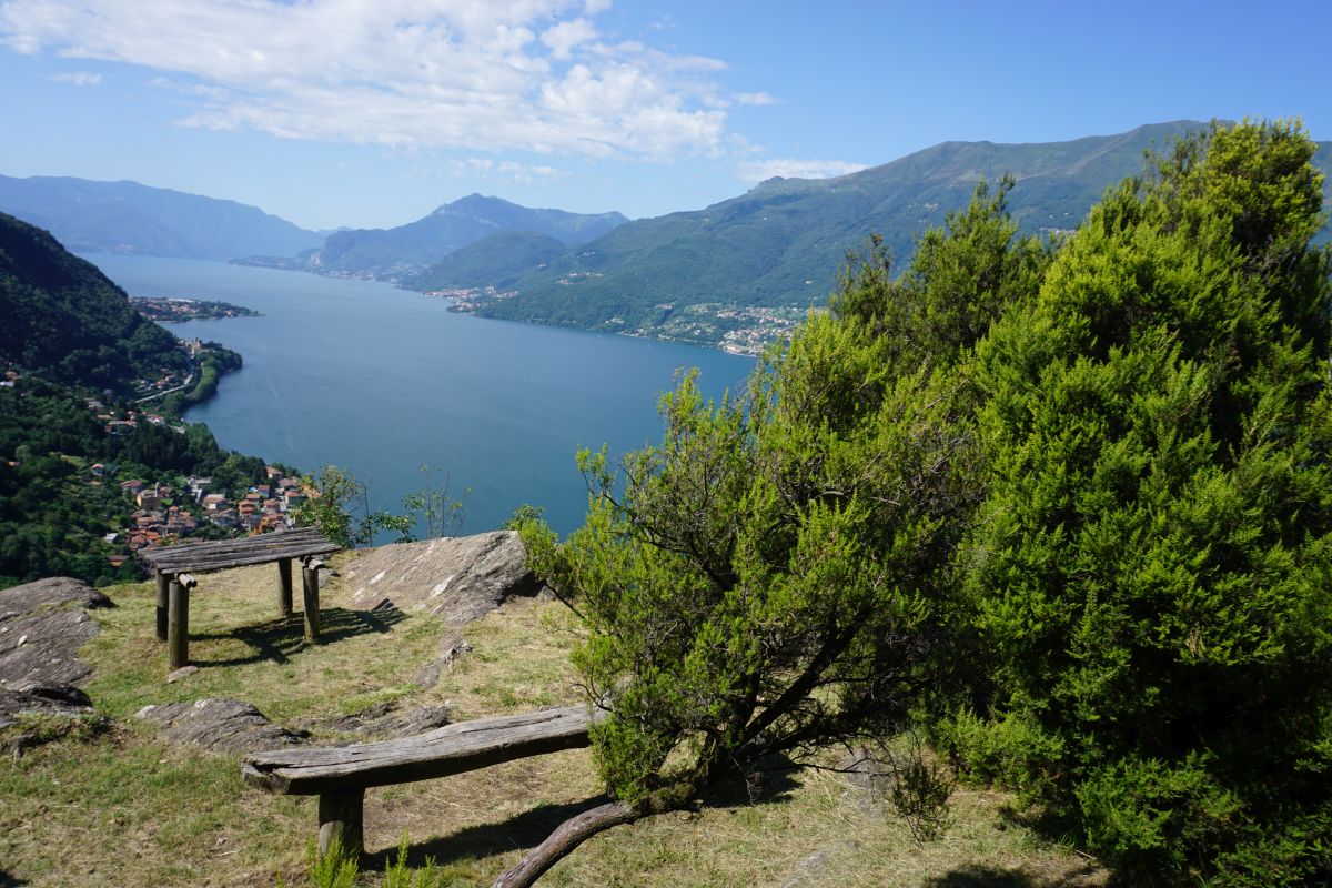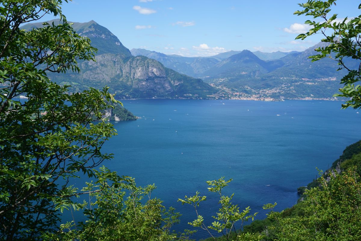 Der Sentiero del Viandante windet sich am östlichen Ufer des Comer Sees entlang, wo sich sanft geneigten Hängen und steile Felsabbrüche abwechseln. Seit Jahrhunderten verbindet dieser Weg alte Ansiedelungen am Wasser mit den höher gelegenen Weideflächen. Seine Anlage folgt keiner modernen Planung, sondern den natürlichen Bedürfnissen und Rhythmen des täglichen Lebens. Jeder Stein, jede Biegung scheint von den Spuren vergangener Generationen zu erzählen – von Bauern, Händlern, Pilgern und Reisenden, die ihn als Lebensader nutzten. Vielfältige Panoramablicke auf das blaue Wasser und auf die mächtigen Berge, die den See wie eine schützende Umarmung umgeben, erfreuen und bewegen. Die üppige Vegetation, der Charme der kleinen Dörfer, die eleganten Villen und das Mosaik aus Olivenhainen, Wiesen und Weingärten bilden eine Harmonie aus Natur und menschlichem Schaffen. Es ist eine Landschaft, die sich den Wandernden auf ihre ganz eigene Weise erschließt. Die Strada Regia, die wir auf den Bergkämmen des Lariano Dreiecks erwandern, bringt traumhafte Ausblicke auf den See und auf die Dreitausender der Schweizer Alpen.