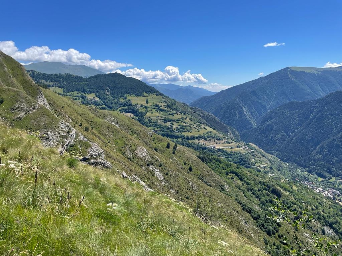 Nach Transfer zum Colle Bettone führt der Aufstieg durch lichte Lärchenwälder zum Sattel San Giovanni mit herrlicher Aussicht. Ein kurzer Abstieg folgt nach Elvas mit seiner freskenbemalten Kirche und dem Haarmuseum. Durch Streusiedlungen erreichen wir Chiosso Superiore. Der folgende Aufstieg wird mit einer Kammwanderung bis zum Colle San Michele belohnt. Abstieg zur Borgota Allemandi und Unterkunft im Bauernhof Al Chersogno.Tagesprofil: 560 Hm Aufstieg, 840 Hm Abstieg, 14,5 km.