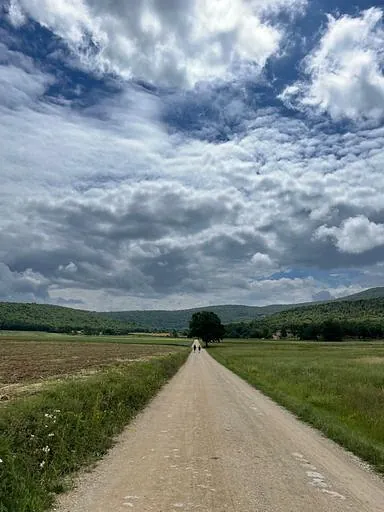 Wir durchqueren eine sanft-hügelige Kulturlandschaft, geprägt von Wiesen, Weingärten, Olivenhainen und Feldern. Dazwischen liegen verstreut Gutshäuser und kleine Ansiedlungen — Zeugnisse einer jahrhundertealten Verbindung zwischen Mensch und Natur. In dieser ruhigen, fast zeitlosen Landschaft lassen wir uns auf den Rhythmus des Gehens ein und spüren, wie der Weg uns langsam in seinen Bann zieht.