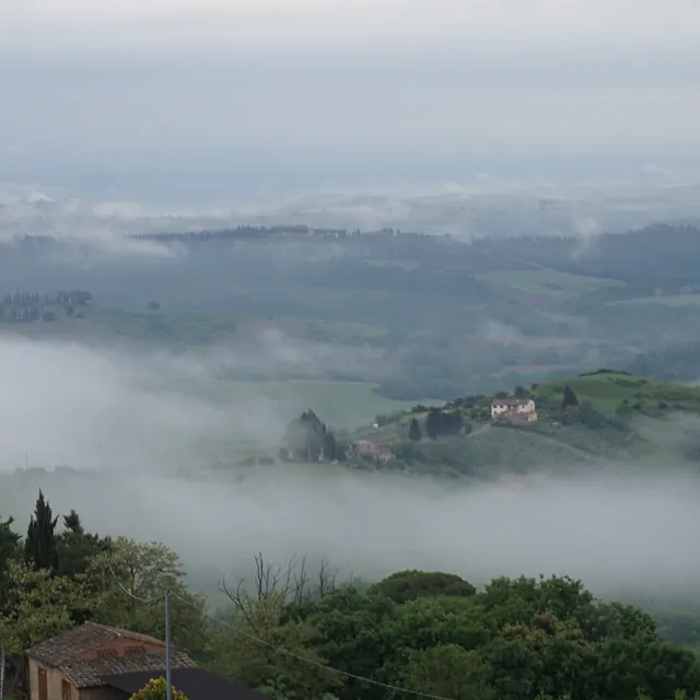 Unsere letzte Wanderetappe beginnt bei den Bagni Caldane, einer Warmwasserquelle mit steinernen Badewannen, die schon in etruskisch-römischer Zeit genutzt wurde. Von hier folgen wir dem historischen Pilgerweg vorbei am mittelalterlichen Hospiz Badia a Isola, das einst Pilger auf ihrem Weg nach Rom beherbergte.Die weite Landschaft der sienesischen Ebene begleitet uns mit ihrem Wechselspiel aus weiten Getreidefeldern, Steineichen- und Olivenhainen, bis wir schließlich Monteriggioni erreichen – die trutzige, von Mauern umgebene Stadt, die wie aus der Zeit gefallen scheint. Nach dem Transfer nach Siena und dem Hotelbezug tauchen wir am Nachmittag mit Flavia, der Stadtführerin in die Geschichte und Seele ihrer eindrucksvollen Stadt ein - eine Führung, die Siena auf besondere Weise lebendig werden lässt.